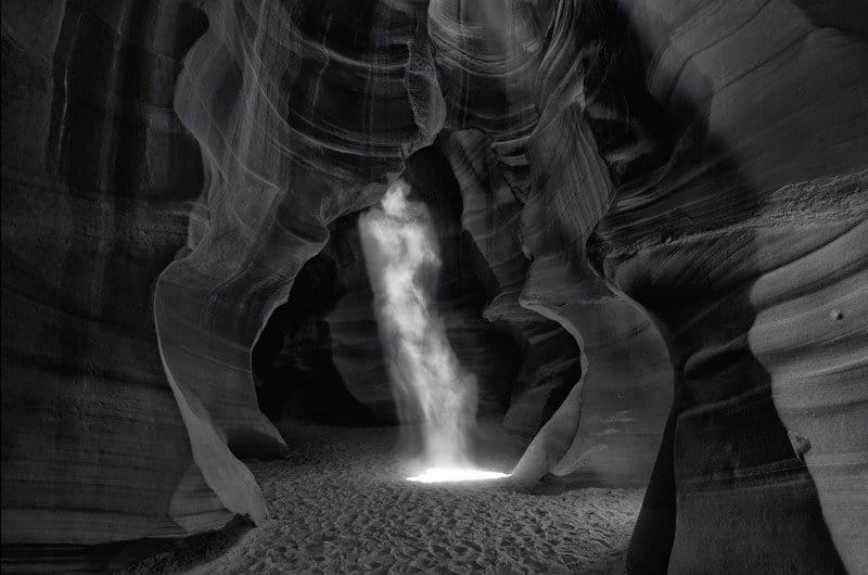 An outstanding Australian professional photographer, Peter Lik, has officially made art history by selling the most expensive picture ever. The photo you see was made in the Southwestern region of the United States, where he is frequently drawn to Arizona’s Antelope Canyon – a slot canyon carved out by natural flowing water over the course of millions of years. It is here, in a subterranean cavern, that Peter captured “Phantom” – a striking, B&W depiction of a ghostlike symbol.